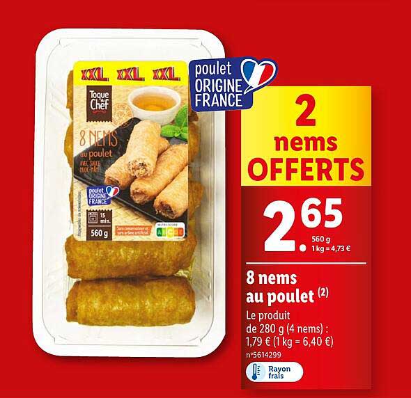 Découvrez l'offre de 2 Nems Offerts 8 Nems Au Poulet chez Lidl! Cette offre fantastique est maintenant disponible dans le nouveau catalogue de Lidl. Profitez de cette occasion et économisez considérablement sur votre achat.