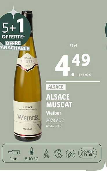 Découvrez l'offre de Alsace Muscat chez Lidl! Cette offre fantastique est maintenant disponible dans le nouveau catalogue de Lidl. Profitez de cette occasion et économisez considérablement sur votre achat.
