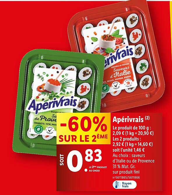 Découvrez l'offre de Aperivrais chez Lidl! Cette offre fantastique est maintenant disponible dans le nouveau catalogue de Lidl. Profitez de cette occasion et économisez considérablement sur votre achat.