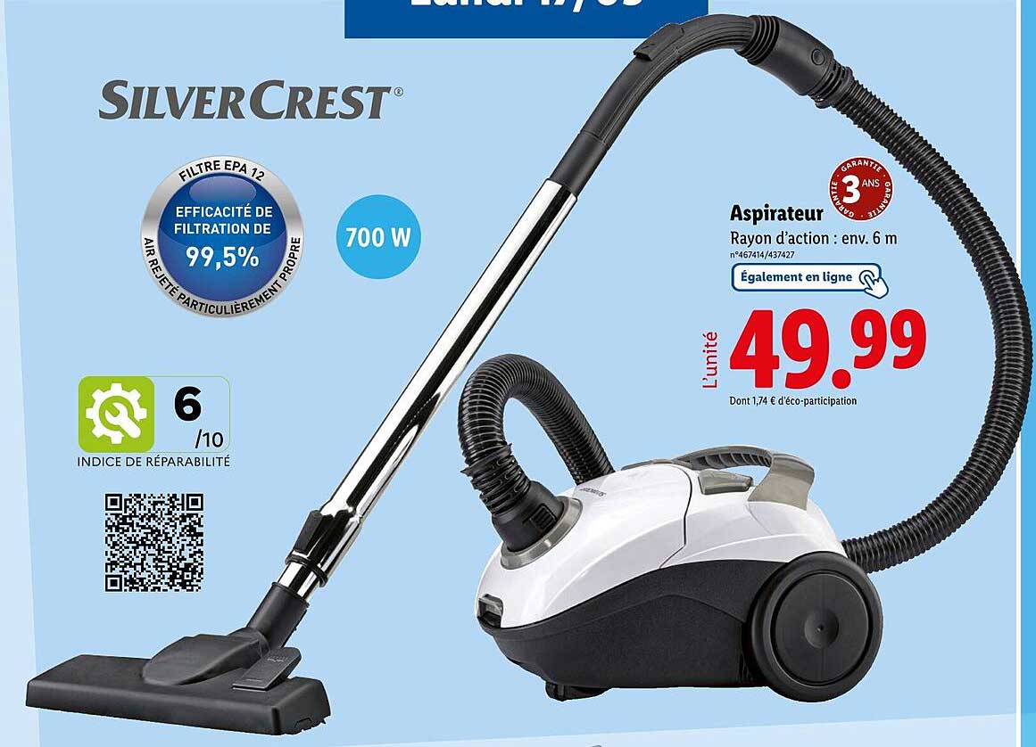 Découvrez dès maintenant la offre Aspirateur dans le catalogue de Lidl. Cette offre est valable du 13/03/2025 au 17/03/2025.