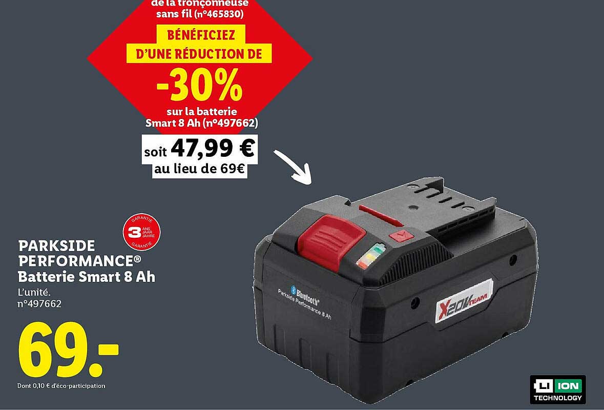 Découvrez dès maintenant la offre Batterie Smart 8 Ah dans le catalogue de Lidl. Cette offre est valable du 28/08/2025 au 03/09/2025.