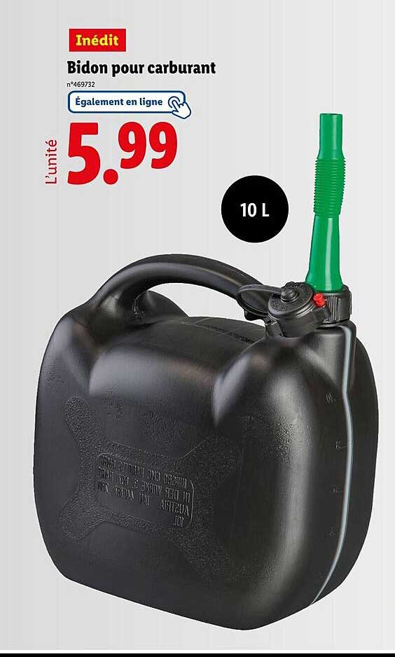 Découvrez dès maintenant la offre Bidon pour carburant dans le catalogue de Lidl. Cette offre est valable du 26/05/2025 au 29/05/2025.