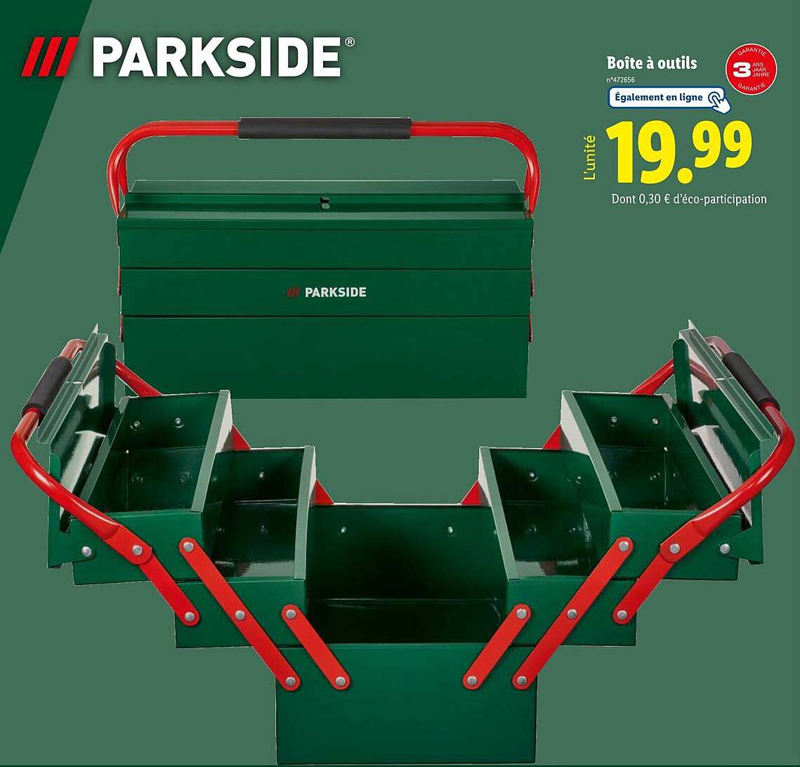 Découvrez la fantastique boîte à outils Parkside, un accessoire indispensable pour les bricoleurs et ceux qui souhaitent organiser leur espace de travail. Disponible du 19 au 23 juin 2025, cette offre vous permettra de profiter d'un produit spécialement conçu pour faciliter votre quotidien. Ne manquez pas cette opportunité !