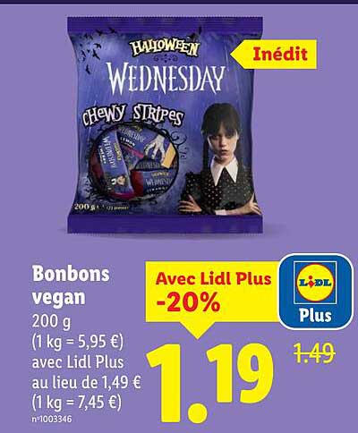 Les bonbons vegan que vous attendiez sont enfin là ! Profitez de cette délicieuse offre disponible chez Lidl, idéale pour les amateurs de douceurs sans produits d'origine animale. Ces bonbons, présentés dans un emballage festif, sont parfaits pour célébrer Halloween ou tout simplement pour se faire plaisir. Pourquoi ne pas en profiter ?
