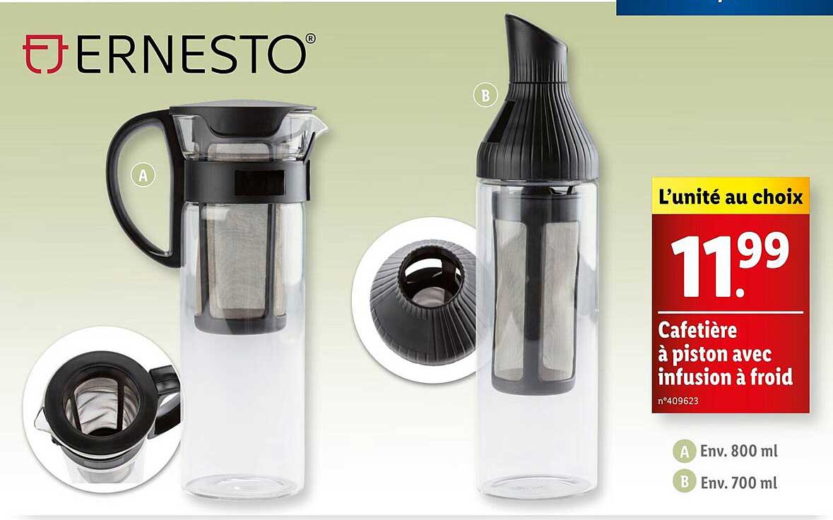 Découvrez l'offre de Cafetière À Piston Avec Infusion À Froid chez Lidl! Cette offre fantastique est maintenant disponible dans le nouveau catalogue de Lidl. Profitez de cette occasion et économisez considérablement sur votre achat.