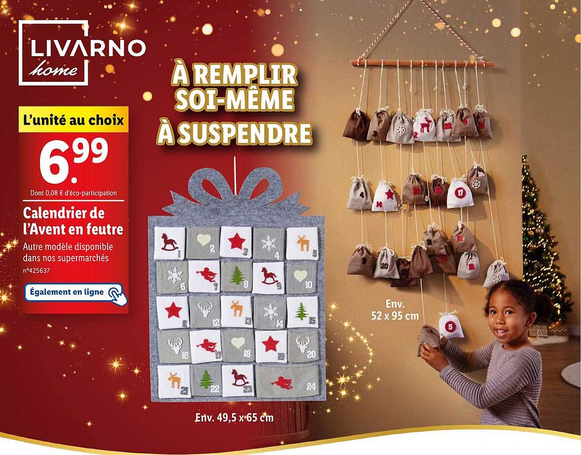 Découvrez l'offre de Calendrier De L'avent En Feutre chez Lidl! Cette offre fantastique est maintenant disponible dans le nouveau catalogue de Lidl. Profitez de cette occasion et économisez considérablement sur votre achat.