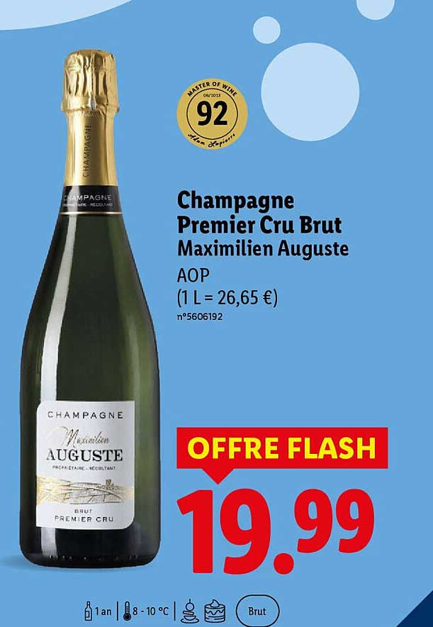 Découvrez dès maintenant la offre Champagne Premier Cru Brut Maximilien Auguste dans le catalogue de Lidl. Cette offre est valable du 04/09/2025 au 10/09/2025.