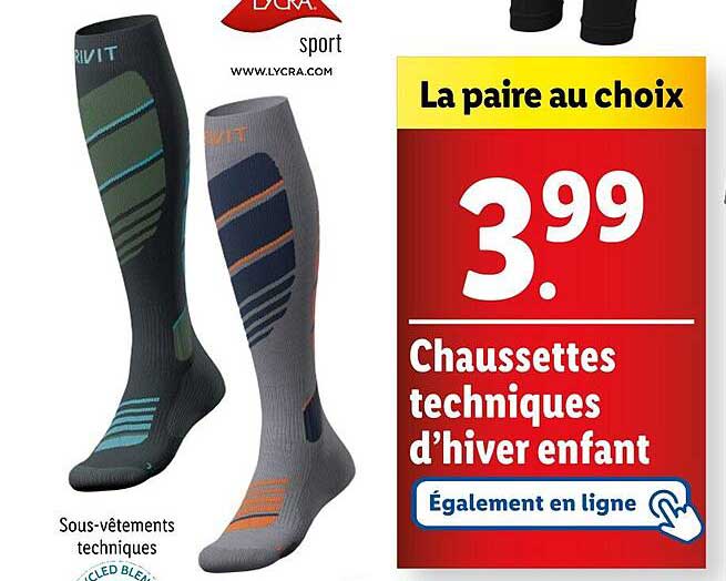 Découvrez l'offre de Chaussettes Techniques D'hiver Enfant chez Lidl! Cette offre fantastique est maintenant disponible dans le nouveau catalogue de Lidl. Profitez de cette occasion et économisez considérablement sur votre achat.