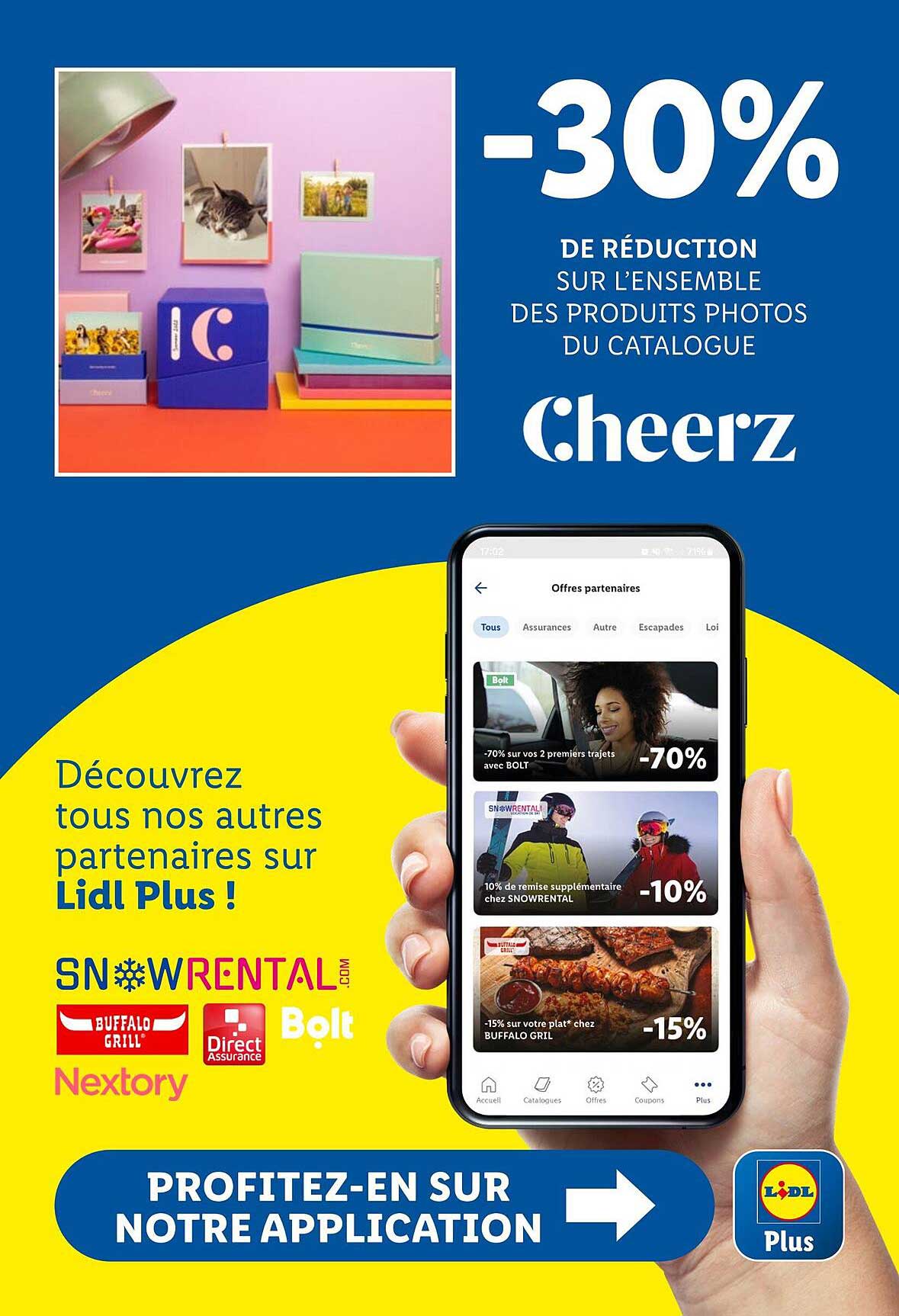 Découvrez l'offre de Cheerz chez Lidl! Cette offre fantastique est maintenant disponible dans le nouveau catalogue de Lidl. Profitez de cette occasion et économisez considérablement sur votre achat.