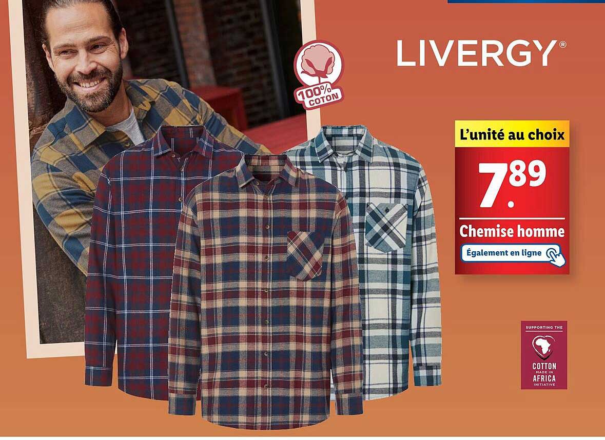 Découvrez la superbe offre de Chemise Homme dans le nouveau catalogue de Lidl. En plus de cette offre, vous trouverez de nombreuses autres réductions attrayantes. Vous pouvez facilement commander le Chemise Homme en ligne via le site web de Lidl ou l'acheter dans un magasin près de chez vous.