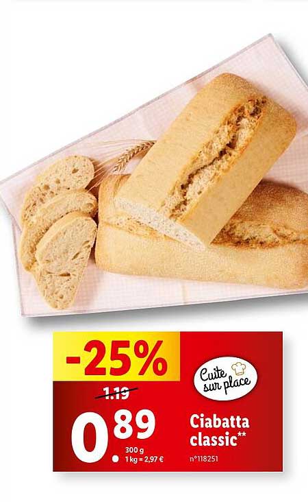 Découvrez l'offre de Ciabatta Classic** chez Lidl! Cette offre fantastique est maintenant disponible dans le nouveau catalogue de Lidl. Profitez de cette occasion et économisez considérablement sur votre achat.