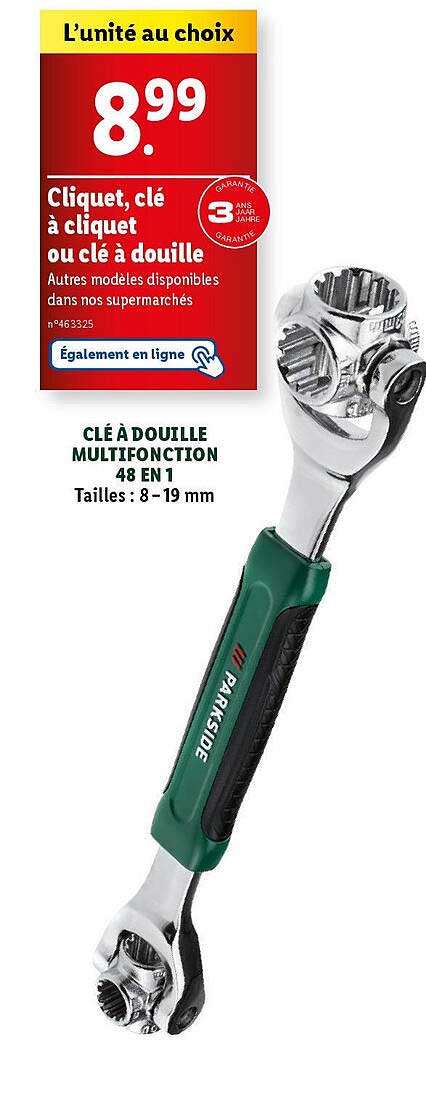 Découvrez dès maintenant la offre CLÉ À DOUILLE MULTIFONCTION 48 EN 1 dans le catalogue de Lidl. Cette offre est valable du 27/01/2025 au 30/01/2025.