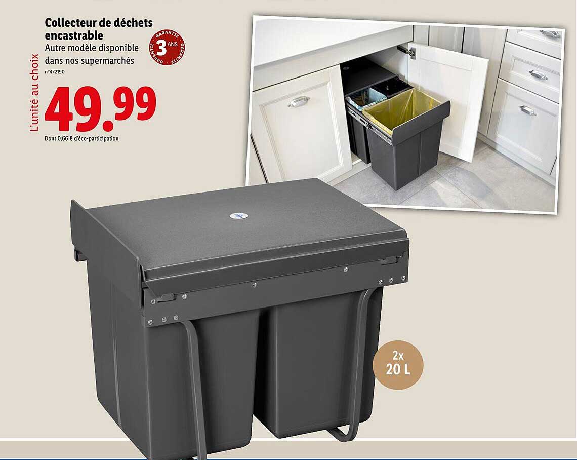 Découvrez dès maintenant la offre Collecteur de déchets encastrable dans le catalogue de Lidl. Cette offre est valable du 23/06/2025 au 26/06/2025.