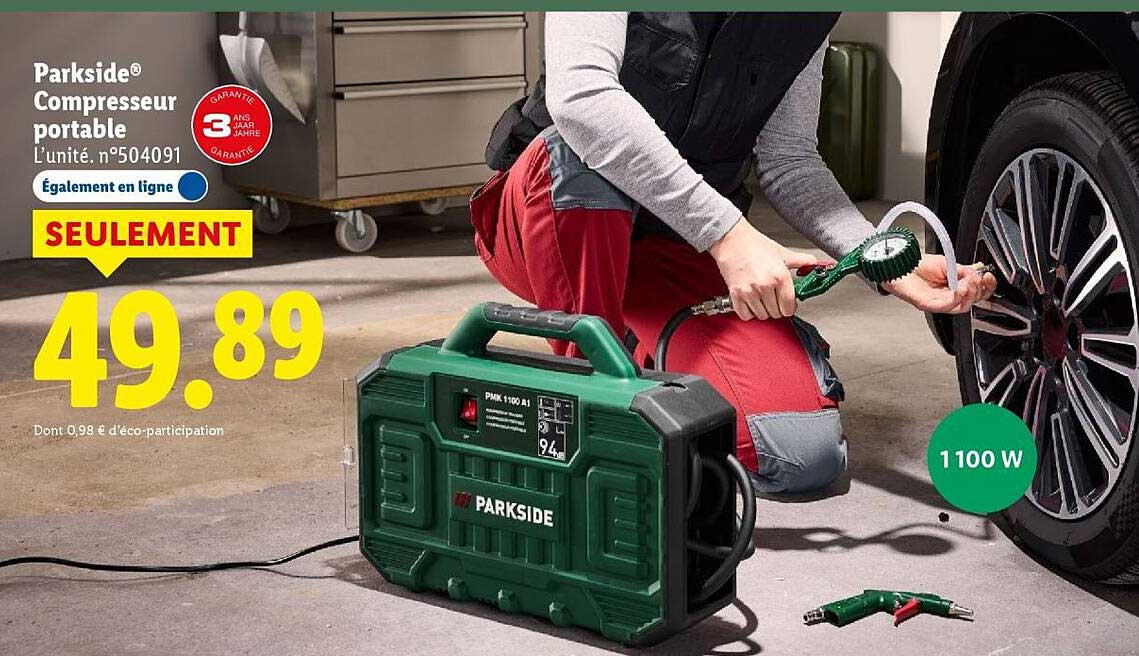 Découvrez dès maintenant la offre Compressieur portable Parkside dans le catalogue de Lidl. Cette offre est valable du 03/11/2025 au 06/11/2025.