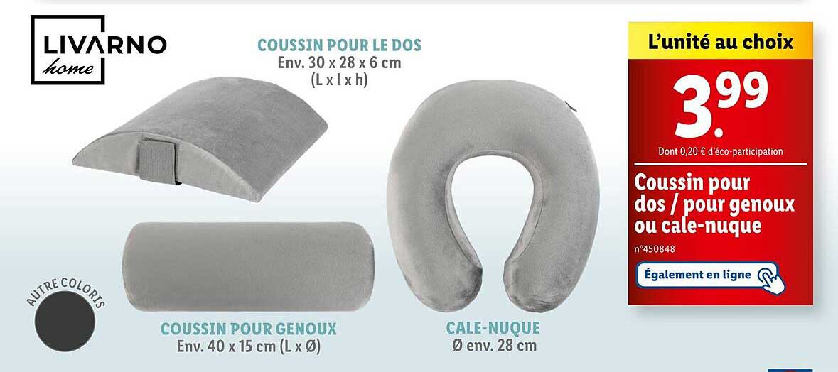 Découvrez l'offre de Coussin Pour Dos / Pour Genoux Ou Cale-Nuque chez Lidl! Cette offre fantastique est maintenant disponible dans le nouveau catalogue de Lidl. Profitez de cette occasion et économisez considérablement sur votre achat.