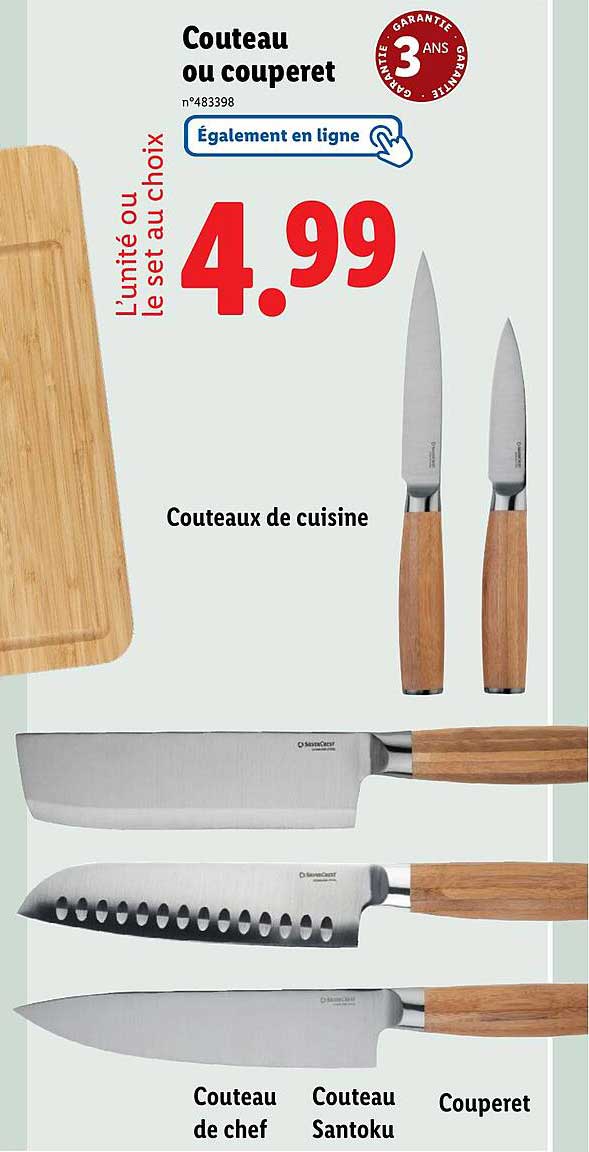 Découvrez dès maintenant la offre Couteau ou couperet dans le catalogue de Lidl. Cette offre est valable du 17/07/2025 au 23/07/2025.