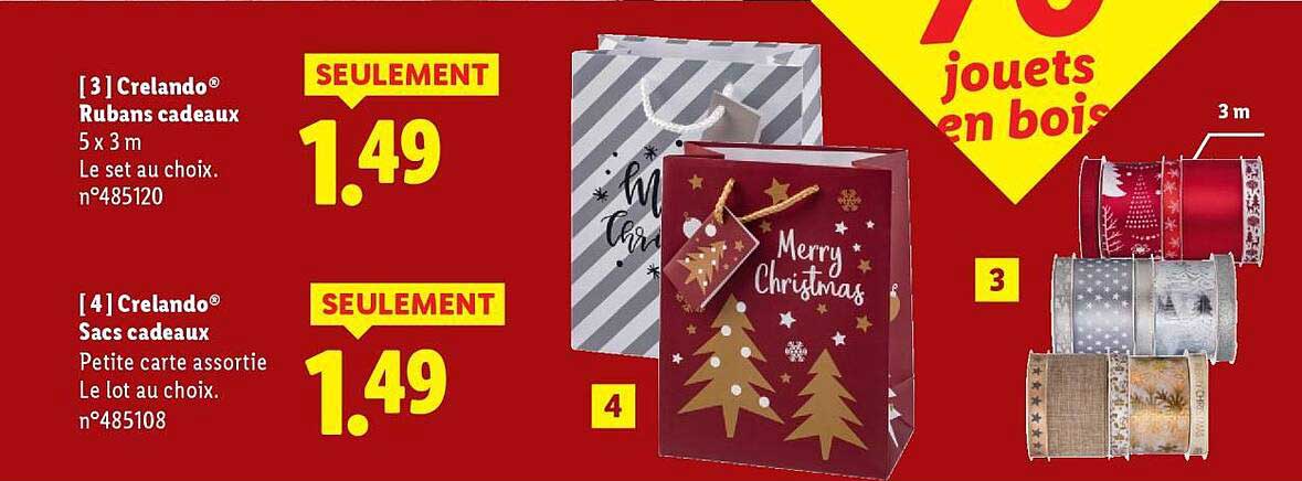 Préparez-vous pour les fêtes avec cette promotion exceptionnelle sur les rubans et sacs cadeaux de la marque Crelando® ! Parfaits pour ajouter une touche personnelle à vos cadeaux, ces articles sont disponibles à prix réduit, vous permettant de faire des économies tout en restant créatif.
