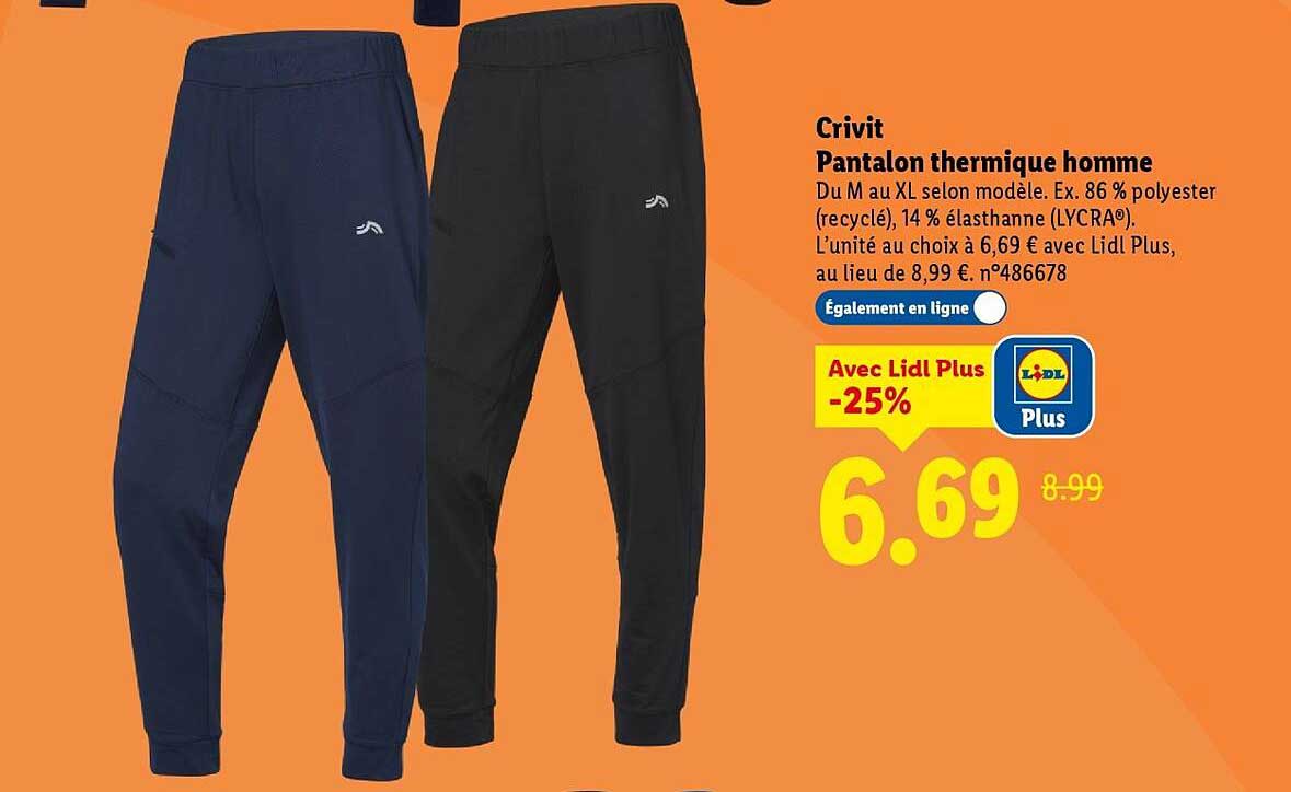 Découvrez dès maintenant la offre Crivit Pantalon thermique homme dans le catalogue de Lidl. Cette offre est valable du 27/10/2025 au 30/10/2025.