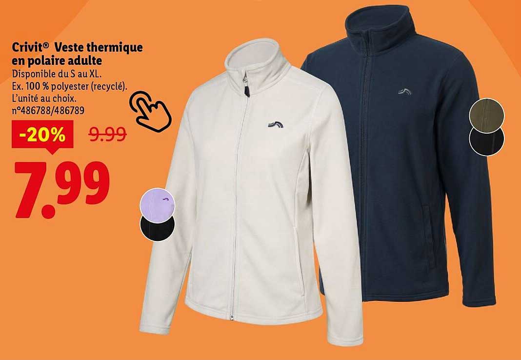 Découvrez dès maintenant la offre Crivit® Veste thermique en polaire adulte dans le catalogue de Lidl. Cette offre est valable du 06/10/2025 au 09/10/2025.