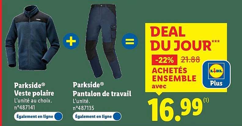 Ne manquez pas cette offre exceptionnelle de Lidl ! Pendant une période limitée, du 6 au 9 octobre 2025, profitez d’un ensemble pratique et confortable comprenant une veste polaire et un pantalon de travail de la marque Parkside. C’est une occasion à saisir pour ceux qui recherchent qualité et praticité à un prix défiant toute concurrence.