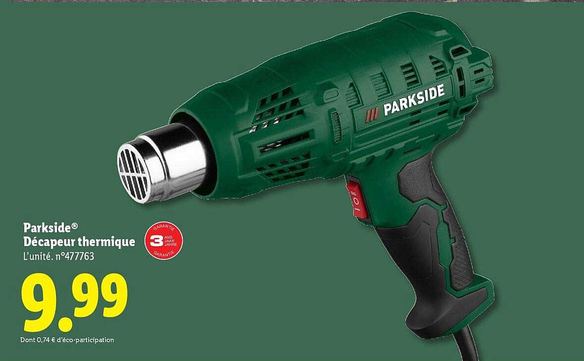 Découvrez dès maintenant la offre Décapeur thermique Parkside dans le catalogue de Lidl. Cette offre est valable du 20/10/2025 au 23/10/2025.