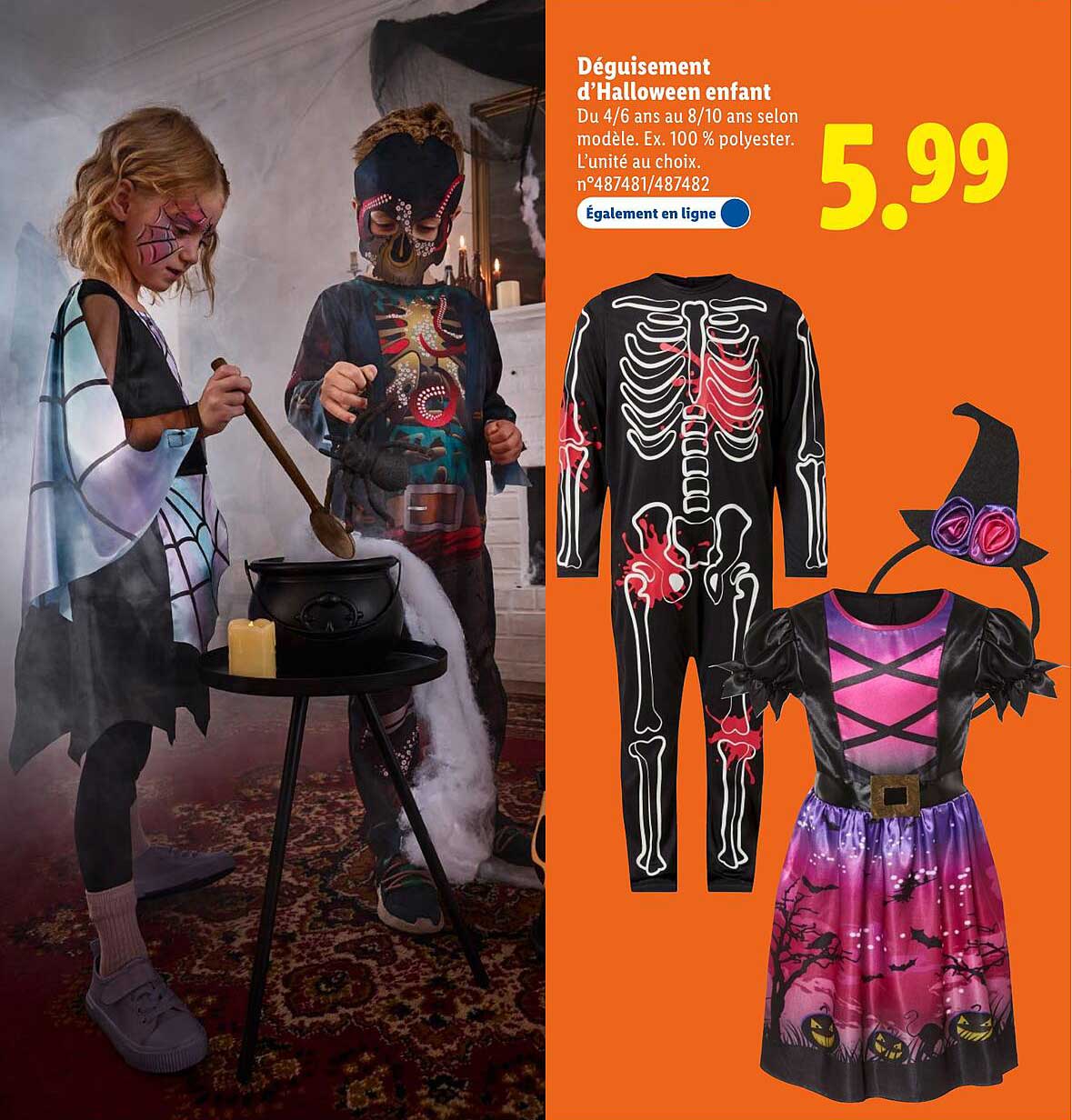 Découvrez dès maintenant la offre Déguisement d'Halloween enfant dans le catalogue de Lidl. Cette offre est valable du 13/10/2025 au 16/10/2025.