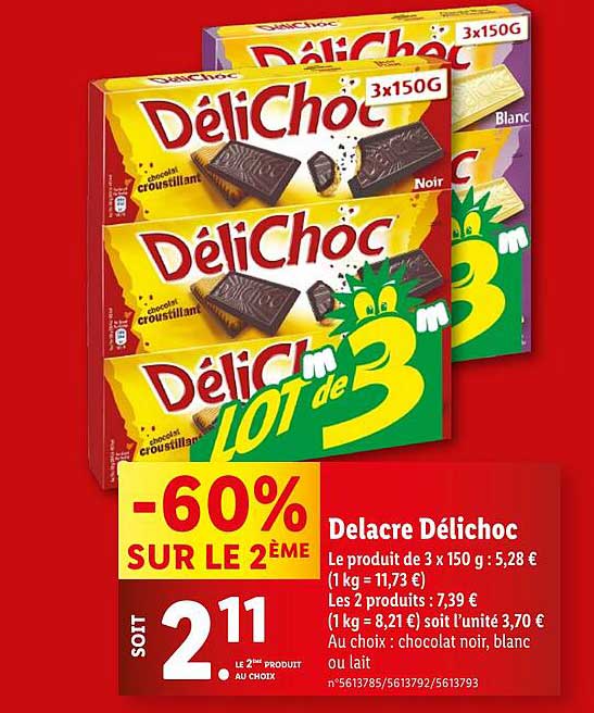 Découvrez l'offre de Delacre Délichoc chez Lidl! Cette offre fantastique est maintenant disponible dans le nouveau catalogue de Lidl. Profitez de cette occasion et économisez considérablement sur votre achat.