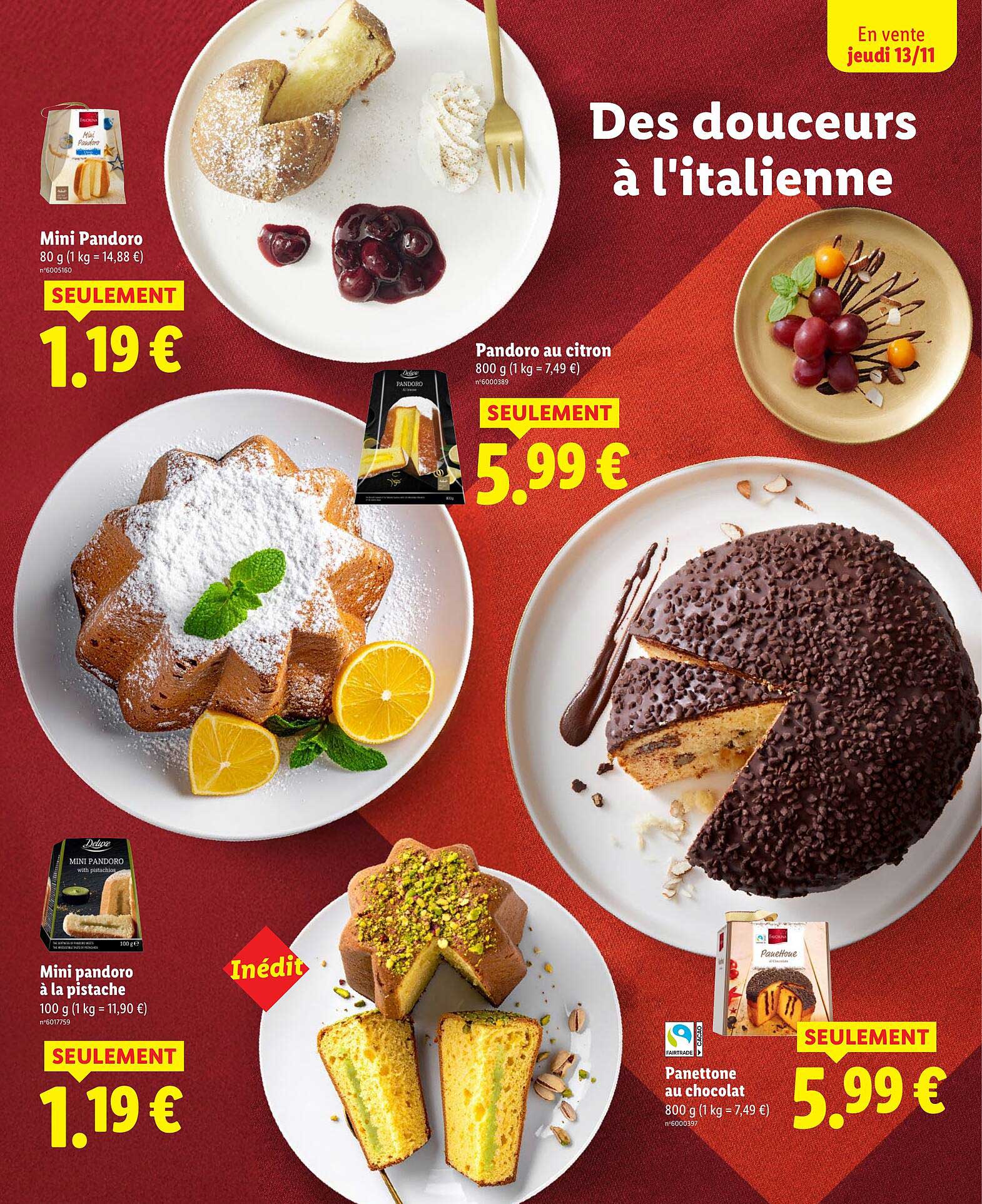 Découvrez dès maintenant la offre Des douceurs à l'italienne dans le catalogue de Lidl. Cette offre est valable du 05/11/2025 au 13/11/2025.
