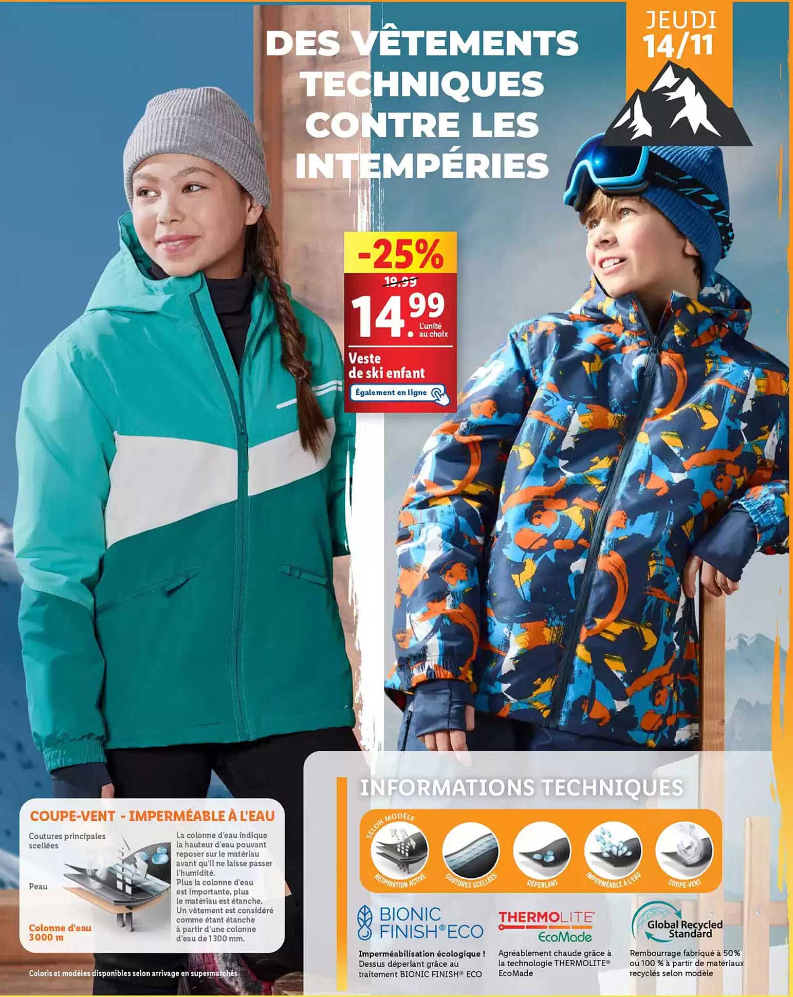 Découvrez dès maintenant la offre DES VÊTEMENTS TECHNIQUES CONTRE LES INTEMPÉRIES dans le catalogue de Lidl. Cette offre est valable du 14/11/2024 au 25/11/2024.