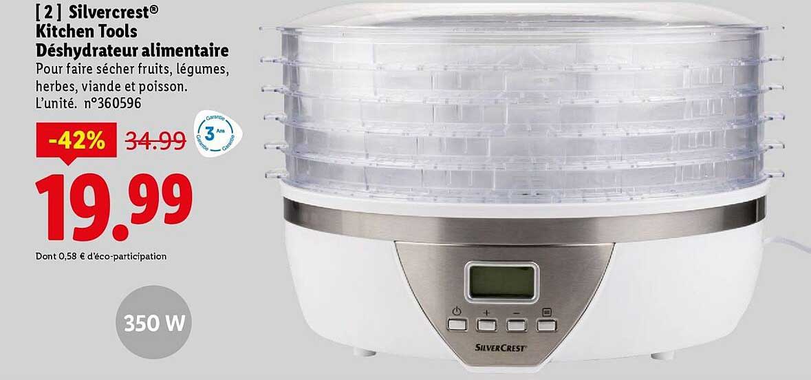 Découvrez dès maintenant la offre Déshydrateur alimentaire Silvercrest® Kitchen Tools dans le catalogue de Lidl. Cette offre est valable du 06/10/2025 au 09/10/2025.