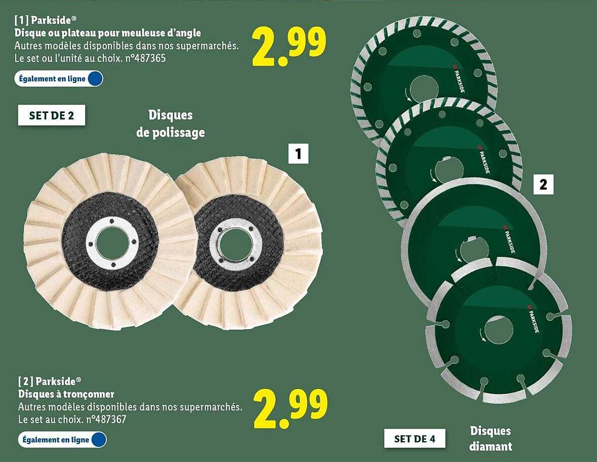 Vous recherchez des outils de qualité pour vos projets de bricolage ou de rénovation ? Lidl vous propose une offre exceptionnelle sur le disque ou plateau pour meuleuse d’angle Parkside. Ce produit, disponible à un prix très attractif, est idéal pour réaliser des travaux de précision. Ne manquez pas cette chance de vous équiper à moindre coût, valable uniquement du 6 au 9 octobre 2025.