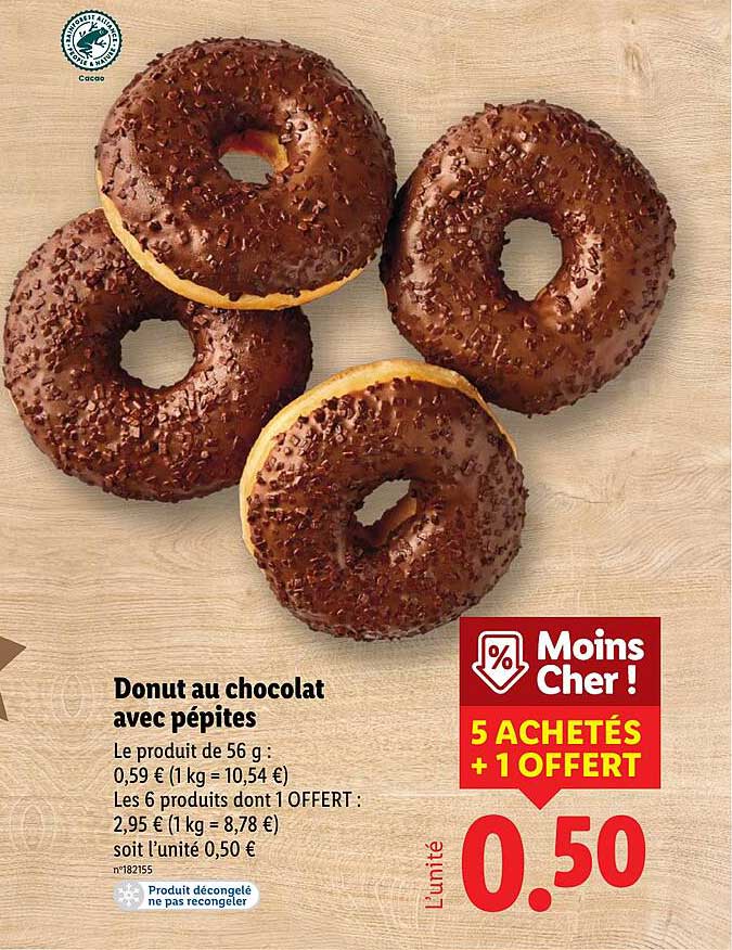 Découvrez l'offre de Donut Au Chocolat Avec Pépites chez Lidl! Cette offre fantastique est maintenant disponible dans le nouveau catalogue de Lidl. Profitez de cette occasion et économisez considérablement sur votre achat.