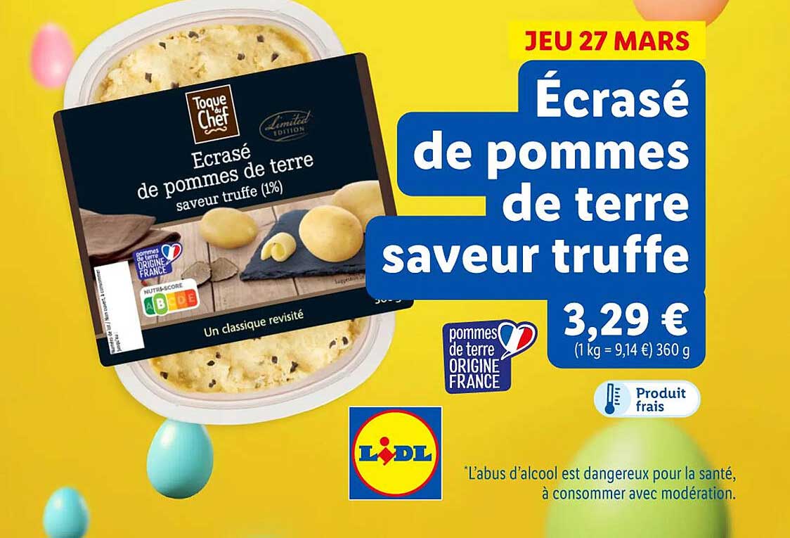 Découvrez l'offre de Écrasé De Pommes De Terre Saveur Truffe chez Lidl! Cette offre fantastique est maintenant disponible dans le nouveau catalogue de Lidl. Profitez de cette occasion et économisez considérablement sur votre achat.