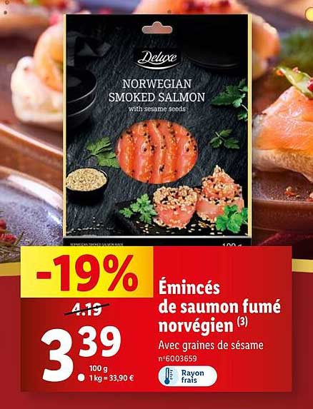 Découvrez l'offre de Émincés De Saumon Fumé Norvégien chez Lidl! Cette offre fantastique est maintenant disponible dans le nouveau catalogue de Lidl. Profitez de cette occasion et économisez considérablement sur votre achat.