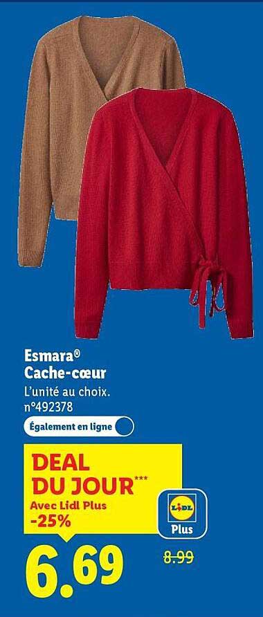 Découvrez dès maintenant la offre Esmara® Cache-cœur dans le catalogue de Lidl. Cette offre est valable du 27/10/2025 au 30/10/2025.