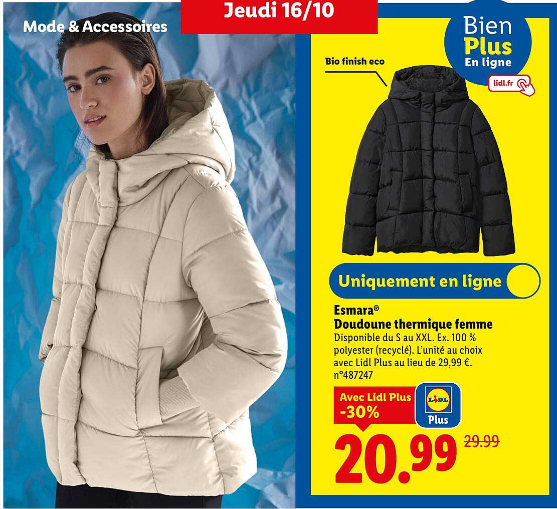 Découvrez dès maintenant la offre Esmara® Doudoune thermique femme dans le catalogue de Lidl. Cette offre est valable du 16/10/2025 au 20/10/2025.