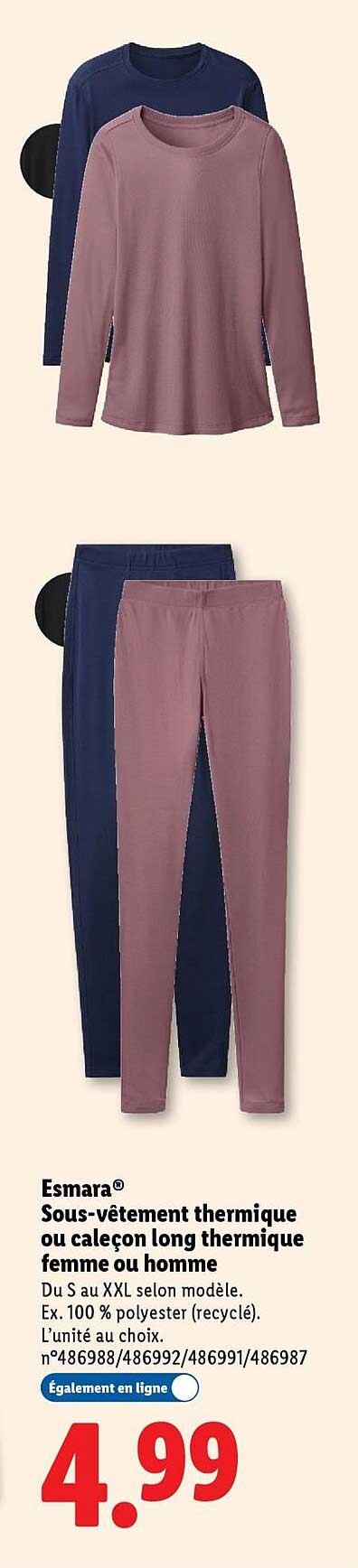 Découvrez dès maintenant la offre Esmara® Sous-vêtement thermique ou caleçon long thermique femme ou homme dans le catalogue de Lidl. Cette offre est valable du 20/10/2025 au 23/10/2025.