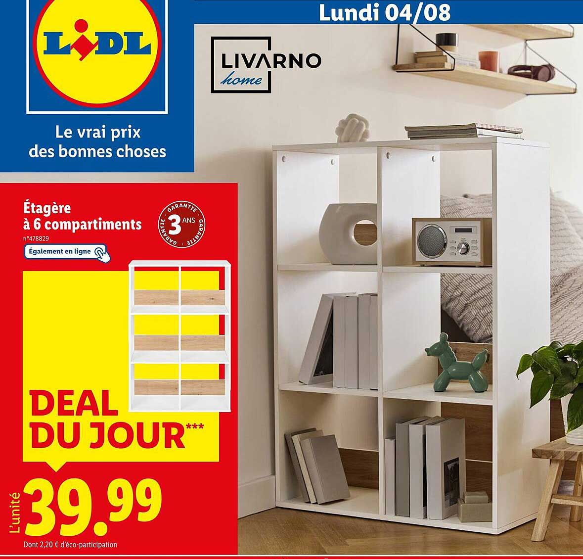 Découvrez dès maintenant la offre Étager à 6 compartiments dans le catalogue de Lidl. Cette offre est valable du 04/08/2025 au 07/08/2025.