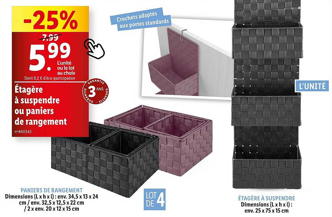 Offre de Étagère À Suspendre Ou Paniers De Rangement chez Lidl