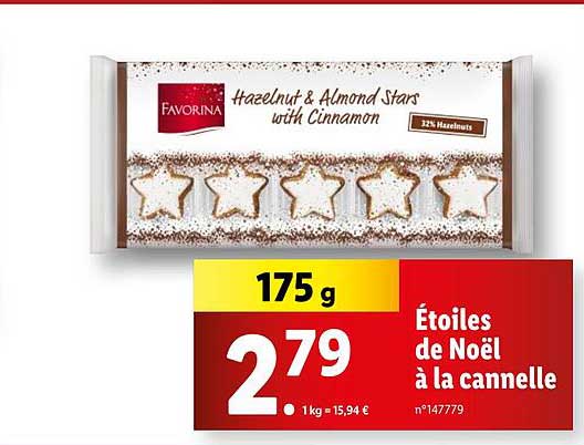 Découvrez dès maintenant la offre Étoiles de Noël à la cannelle dans le catalogue de Lidl. Cette offre est valable du 06/11/2024 au 12/11/2024.