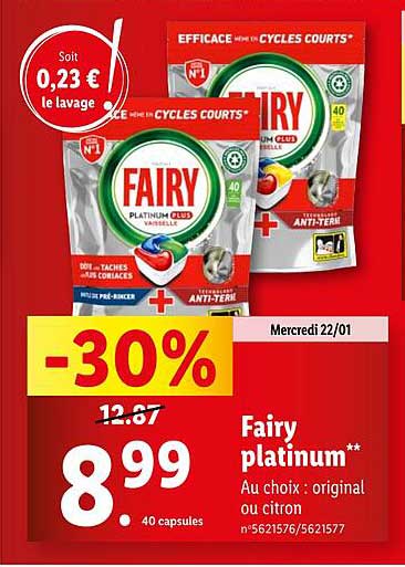 Découvrez dès maintenant la offre Fairy platinum** dans le catalogue de Lidl. Cette offre est valable du 22/01/2025 au 28/01/2025.