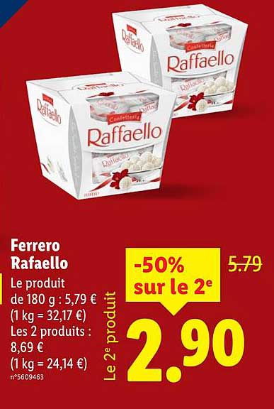 Découvrez dès maintenant la offre Ferrero Raffaello dans le catalogue de Lidl. Cette offre est valable du 06/11/2025 au 12/11/2025.