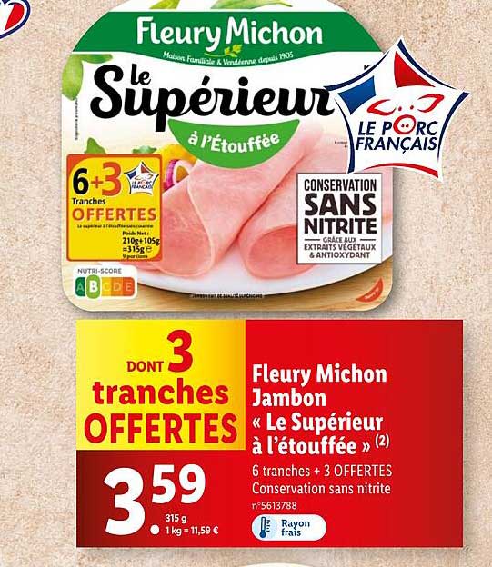 Découvrez l'offre de Fleury Michon Jambon « Le Supérieur À L’étouffée » chez Lidl! Cette offre fantastique est maintenant disponible dans le nouveau catalogue de Lidl. Profitez de cette occasion et économisez considérablement sur votre achat.