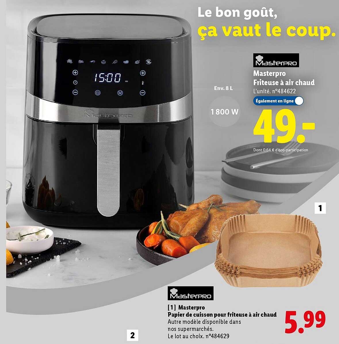 Découvrez dès maintenant la offre Friteuse à air chaud Masterpro 8 L dans le catalogue de Lidl. Cette offre est valable du 06/10/2025 au 09/10/2025.