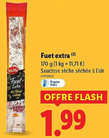 Découvrez dès maintenant la offre Fuet extra dans le catalogue de Lidl. Cette offre est valable du 25/09/2025 au 01/10/2025.