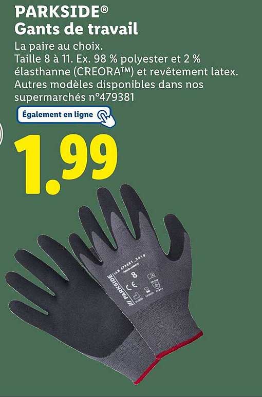 Pour découvrir d’autres produits à prix réduit, n’hésitez pas à consulter le catalogue Lidl ici. Vous y trouverez d'autres offres attractives qui pourraient accompagner vos gants de travail.