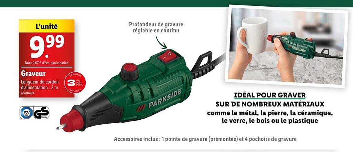 Découvrez l'offre de Graveur chez Lidl! Cette offre fantastique est maintenant disponible dans le nouveau catalogue de Lidl. Profitez de cette occasion et économisez considérablement sur votre achat.