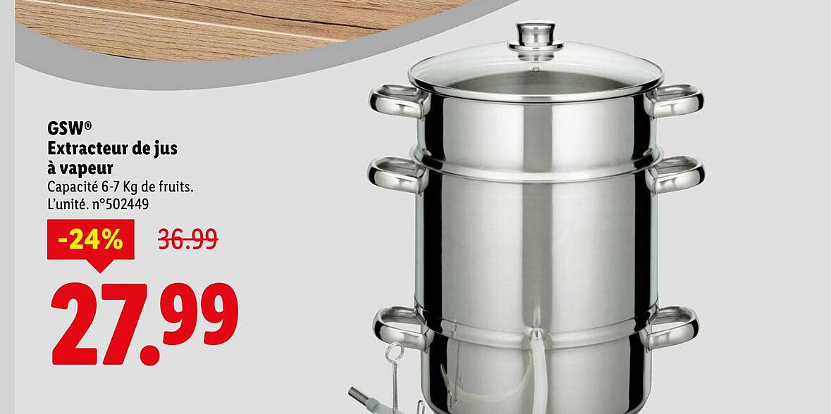 Découvrez dès maintenant la offre GSW® Extracteur de jus à vapeur dans le catalogue de Lidl. Cette offre est valable du 23/10/2025 au 29/10/2025.