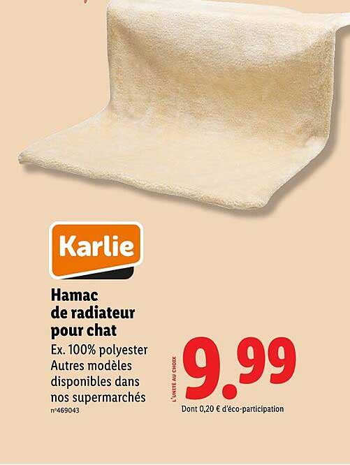 Découvrez dès maintenant la offre Hamac de radiateur pour chat dans le catalogue de Lidl. Cette offre est valable du 06/02/2025 au 10/02/2025.