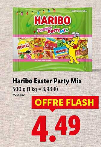 Découvrez dès maintenant la offre Haribo Easter Party Mix dans le catalogue de Lidl. Cette offre est valable du 27/03/2025 au 02/04/2025.